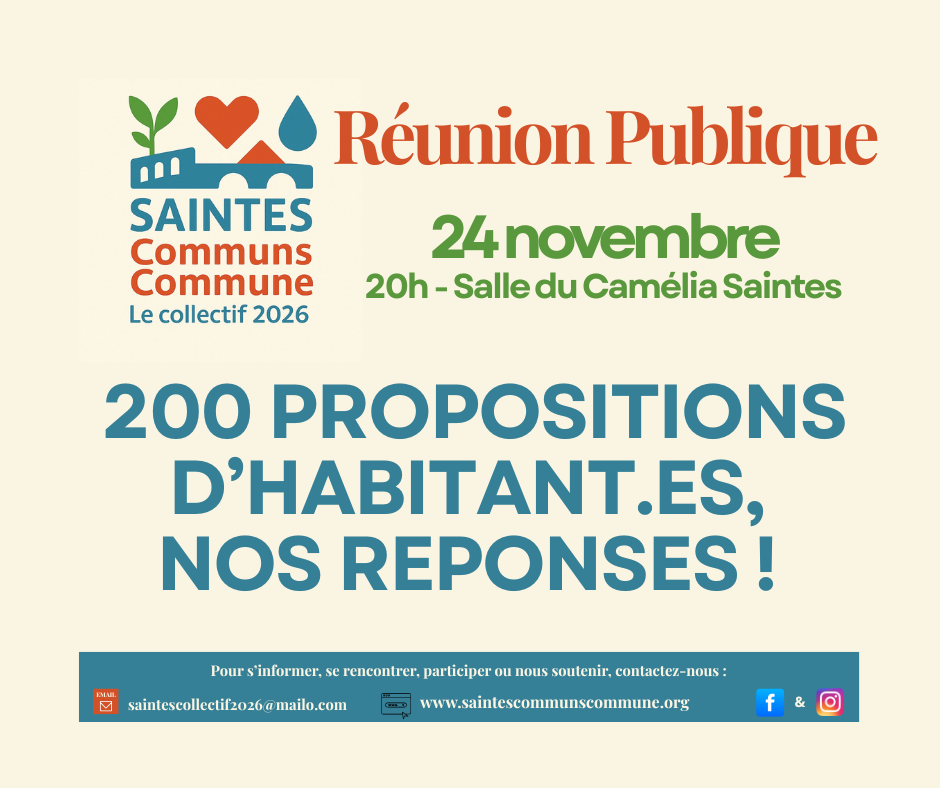Réunion Publique le 24 Novembre à 20h – Salle du Camélia Saintes
